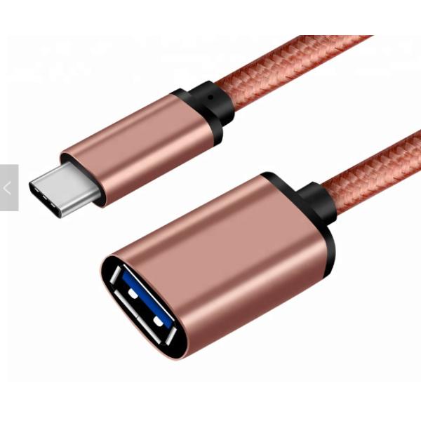 Shiny Pink 3.1 USB Type C Cable To 3.0 A Female 30 Cm For USB OTG Function Images |